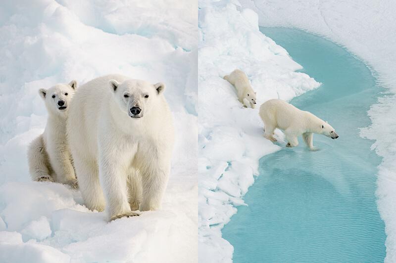 A truly one-of-a-kind moment came at 2:30am on our fourth night of cruising, when we spotted fresh polar bear footprints outside our suites. Within minutes, we were all on deck, watching a mother bear and her cub. Simply unforgettable! Over the course of the journey, we saw walruses, seals, an Arctic fox (much smaller than we expected), thousands of migratory birds, and even a whale.